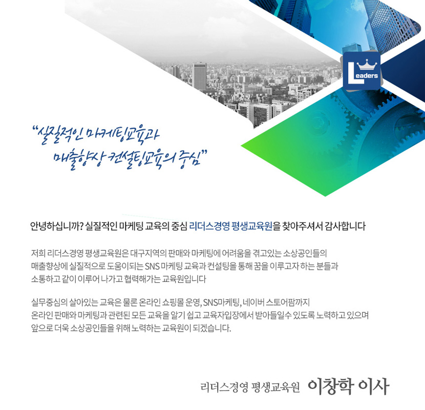 대구광역시 북구 유통단지로27길 21 3층 리더스경영 평생교육원TEL:053-321-6787FAX:053-314-6787